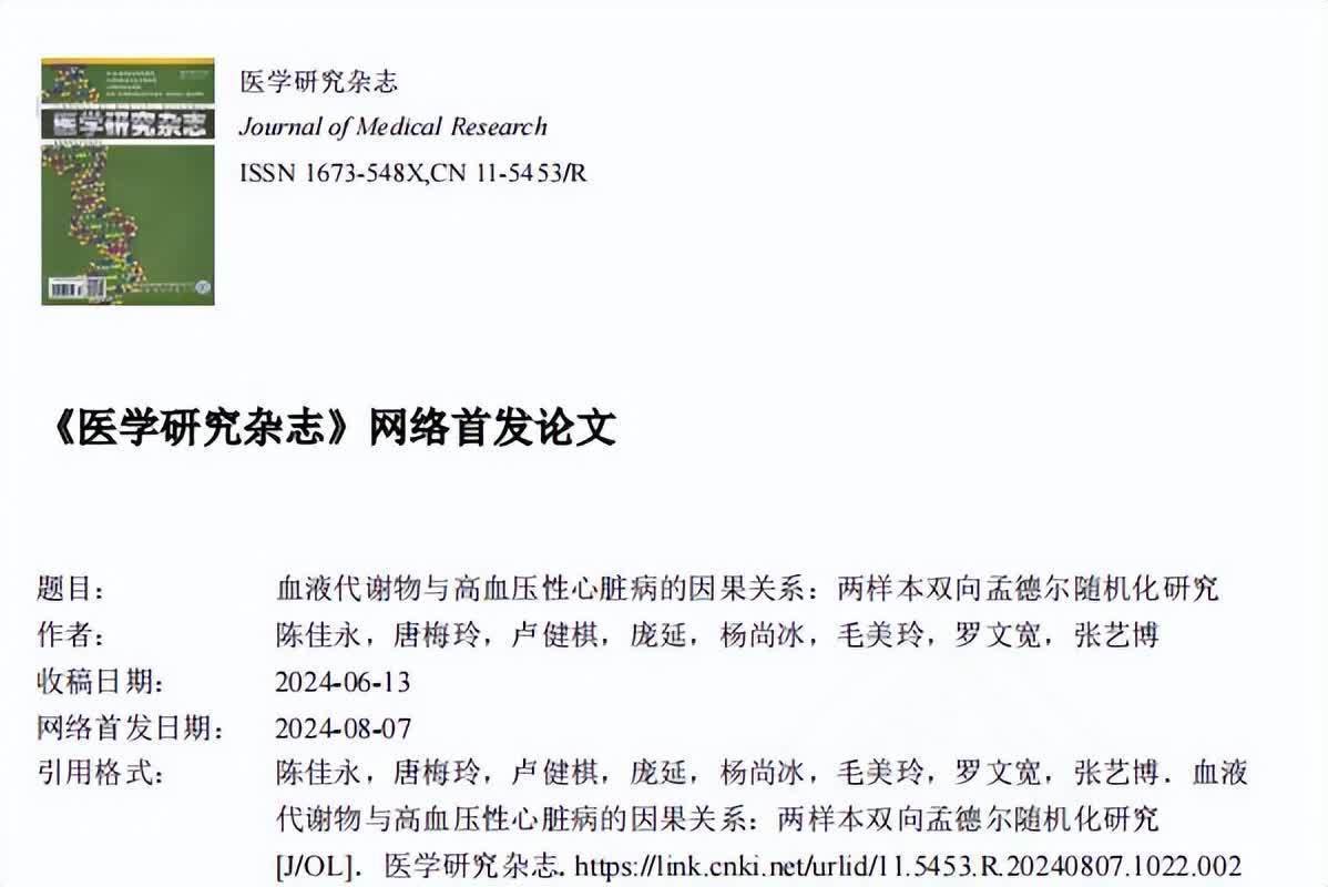 参考资料[1]陈佳永.血液代谢物与高血压性心脏病的因果关系:两样本双向孟德尔随机化研究正规股票配资平台,医学研究杂志,2024-08-07