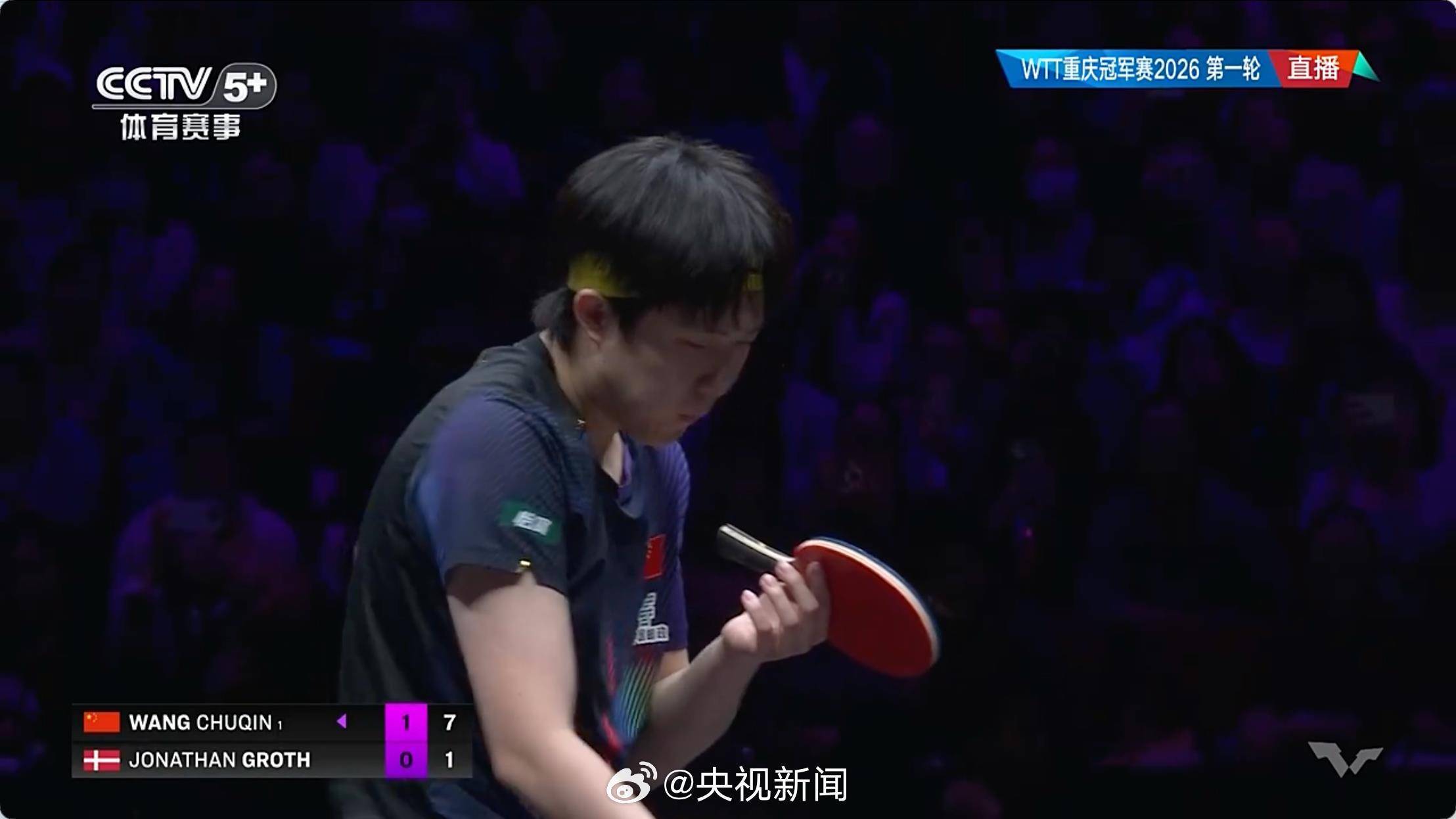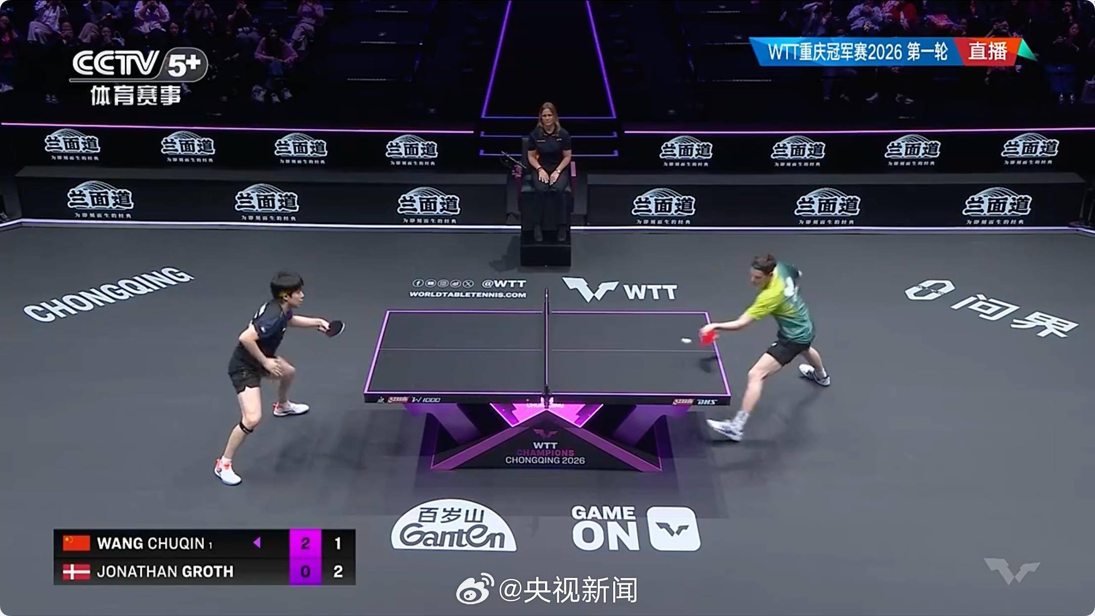 WTT重庆冠军赛2026男单1/16决赛,王楚钦战胜对手,晋级16强。继续加油!