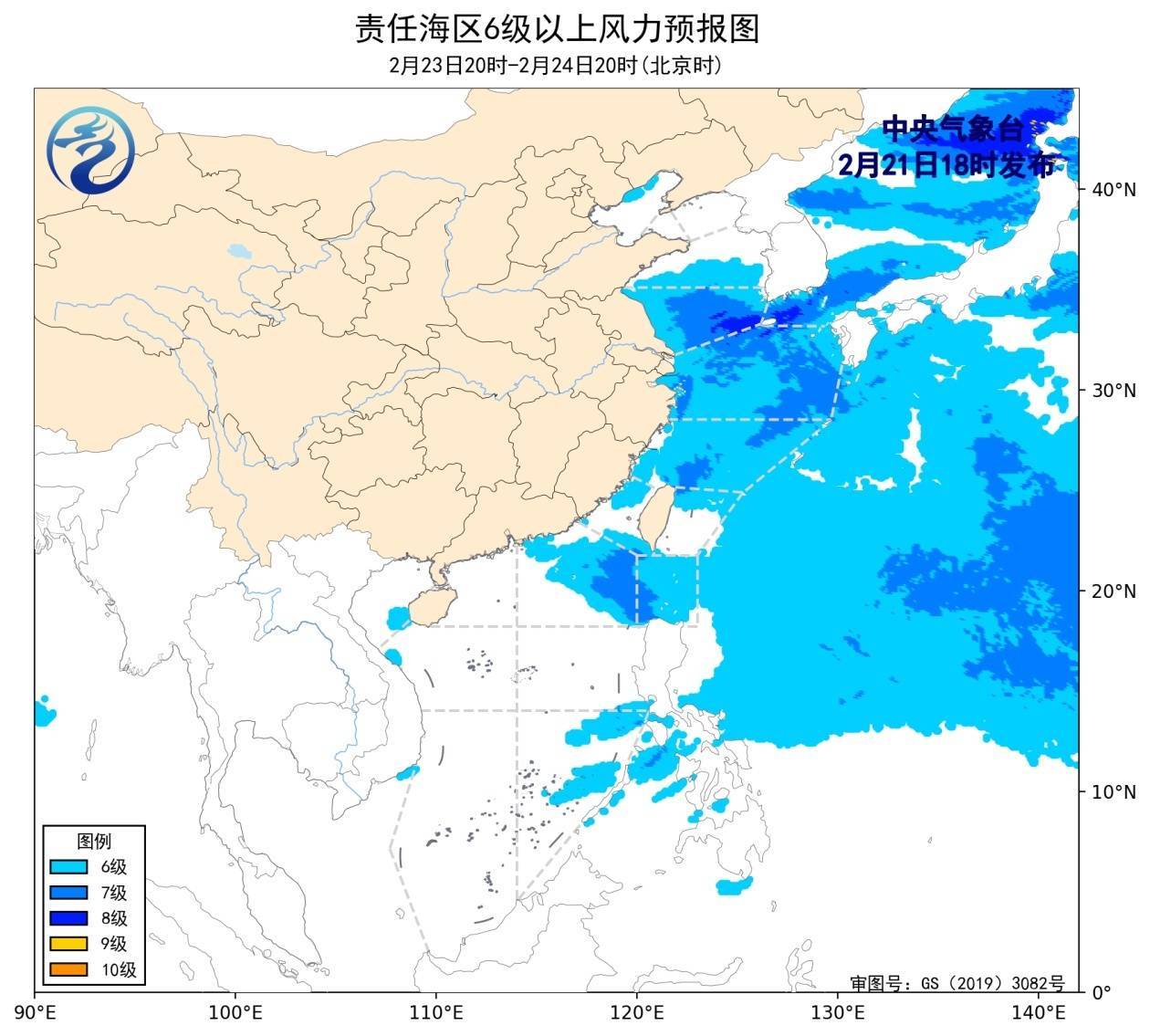 r预计,2月24日夜间至28日白天,黄海南部海域、东海大部海域、台湾海峡、巴士海峡、台湾以东洋面、南海东北部海域将有6~7级、阵风8级的风。