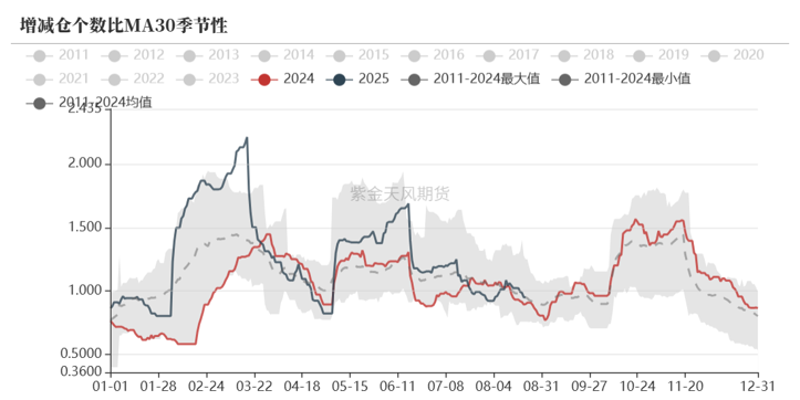 增减仓比可以看出,近期增仓力量季节性回落。